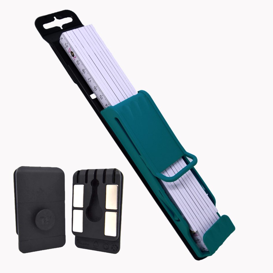 Tumstockshållare inklusive Univeralhållare med magnet samt Wacta Tumstock. Hållaren kan roteras 360 grader vilket underlättar när man ex sitter ned.